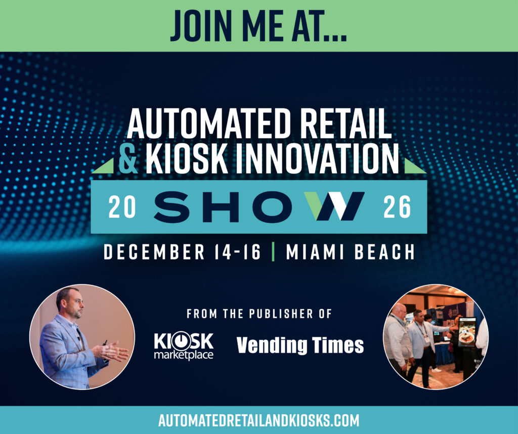 - Honored to be speaking at Automated Retail & Kiosk Innovation Show on December 10-12 in Tampa. Connect with me there! #ARKI2025